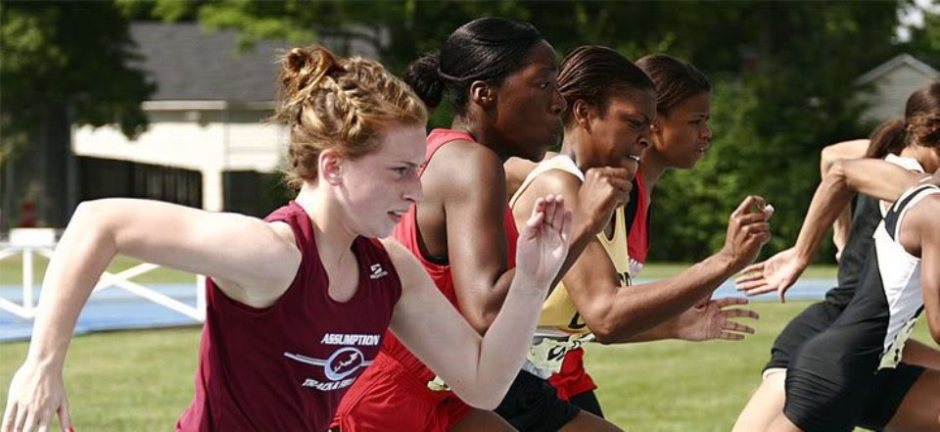 All Assumption Track & Field athletes compete in meets by the end of the season. We do not require everyone to compete in Indoor meets (January to early March), but we do require the girls to compete in Outdoor meets (early March to mid-May). In some indoor meets and any postseason meets after State (e.g. Nike Outdoor Nationals), the girls are not allowed (as per KHSAA rules) to compete for Assumption and so they run as part of the Derby City Athletic Club. We provide information about getting a club team uniform once we know who may be competing in these meets.
